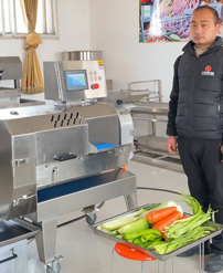 切菜機具備雙調頻功能,一端是切葉菜類,如長蔥,蒜苗,韭菜,芹菜,白菜,青菜等,一端是切球根莖類,如蘿卜,土豆,紅薯,芋頭,筍,洋蔥,茄子,蘋果,生姜等。根莖部分可切片(厚薄度2-10毫米可選),根莖部分切絲(2-10mm方絲可選),根莖部分切?。?mm,10mm,12mm,15mm,20mm),葉菜部分切段切條(長度1-90mm可調),具備雙調頻功能。